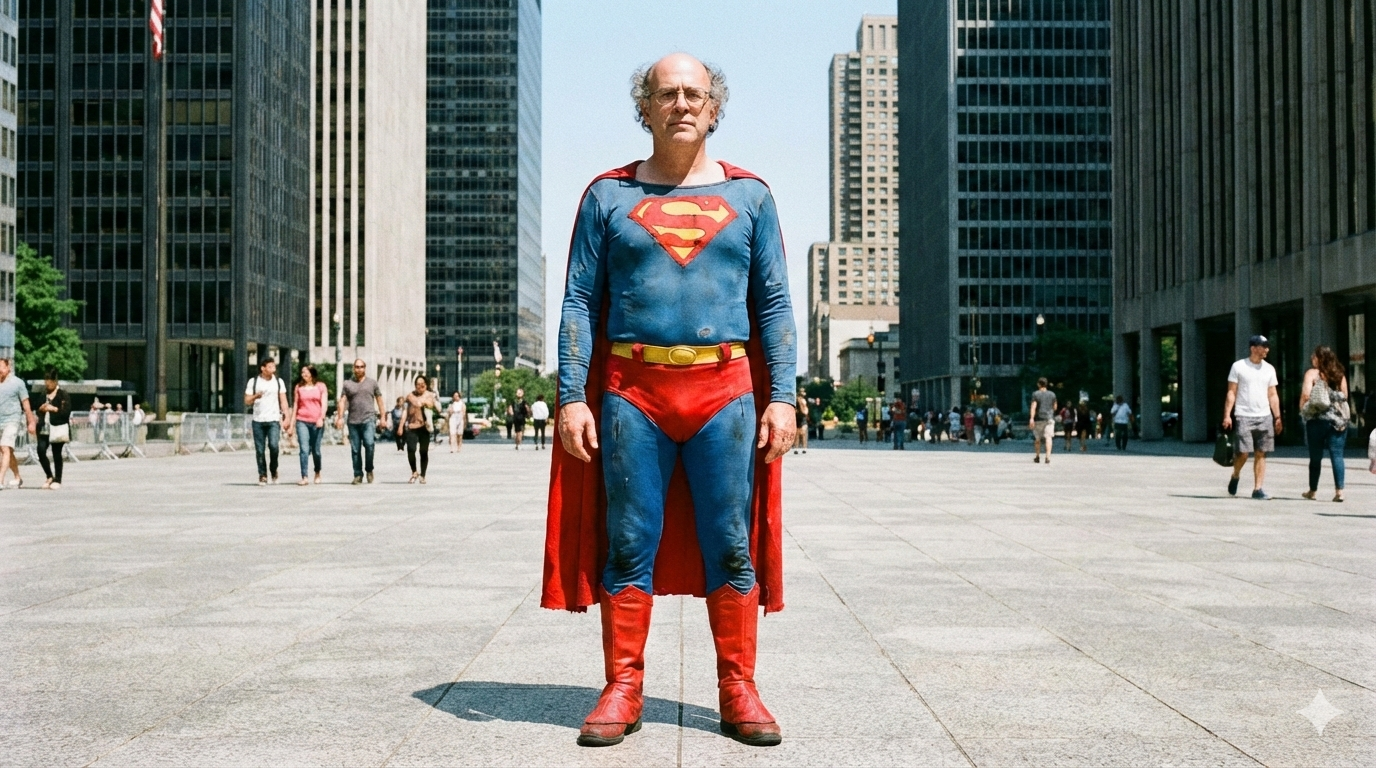 Pero he encontrado otro ejemplo que cumple con la descripción y que te puede caer mal, pero es bastante diferente de Superman: el personaje de Larry David en Curb your enthusiasm.