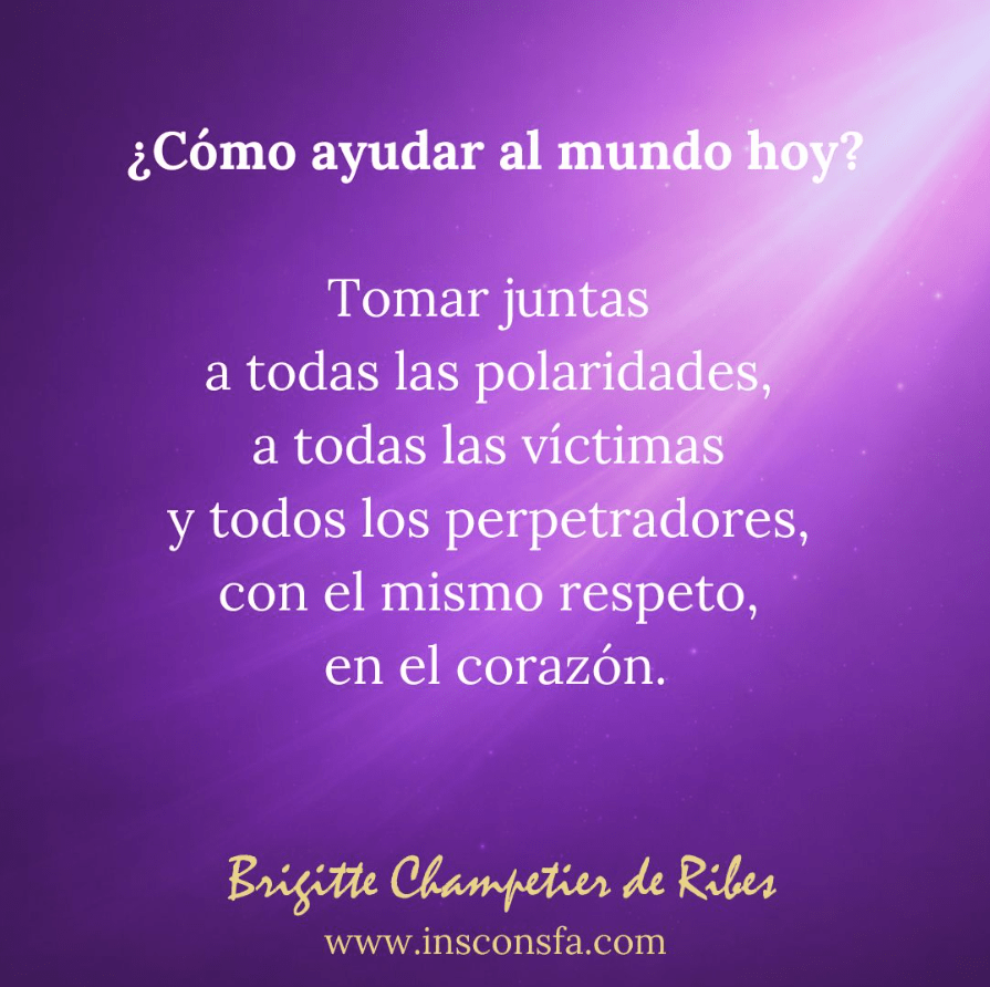Aquí es donde encaja una propuesta rompedora y que se sale totalmente de todo lo que estamos oyendo en distintos medios. Una propuesta que se comprende si se está muy cerca de esa realidad del observador como ser superior, como puro amor, o si se conoce a personas de los dos lados de un conflicto. Y es esta: